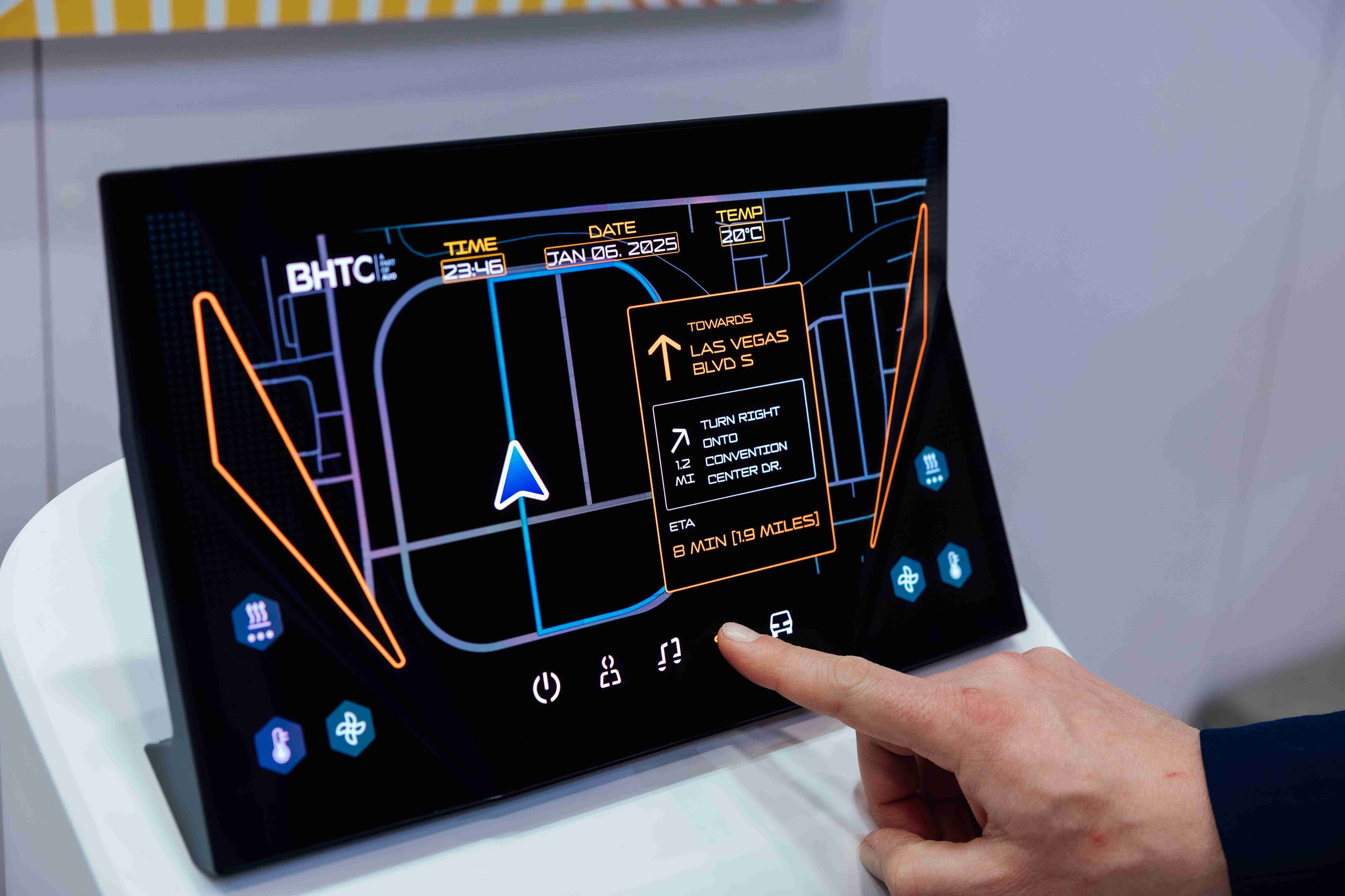 JDB电子首次与BHTC于CES共同展出,,结合核心显示技术与BHTC强大的车用HMI能力,,,以匠心独具的互动控制设计,,,展示出贴近乘用者需求的Display HMI 解决方案。。
