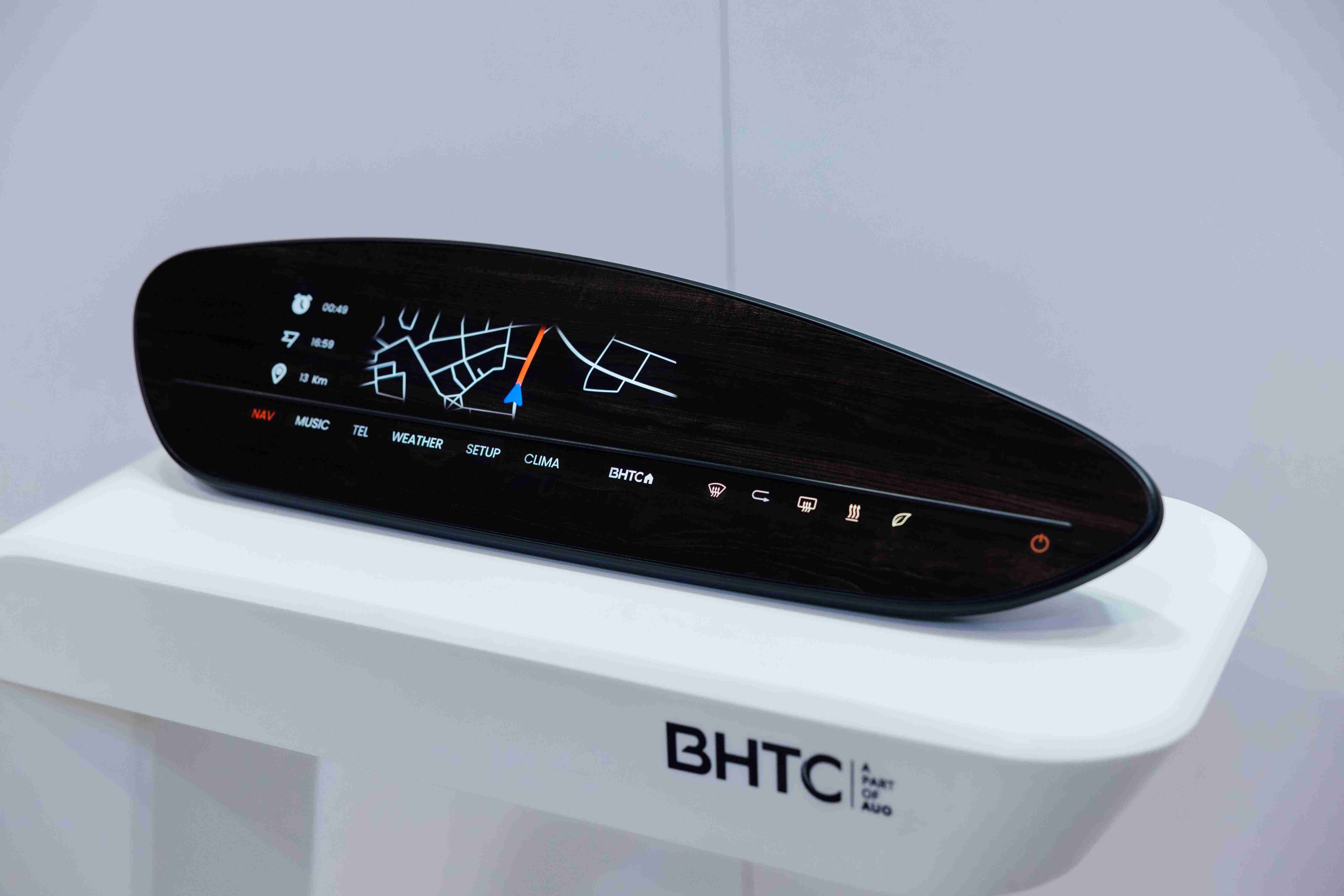 BHTC的木纹车用显示器(Display Behind Wood)将无缝木质表面与显示器结合后,,,,可以融入车内设计中,,,,提供驾驶优质的视觉效果,,,,加上其无边框的设计和亮度调控,,,创造更优质的车内体验。。。
