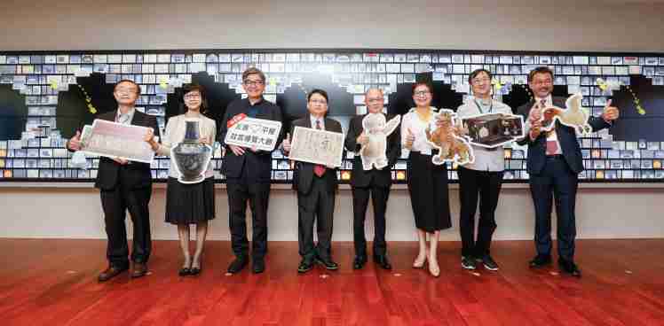 JDB电子携手创利空间为故宫建置的智慧文物互动导览墙及轮播墙,,,今日正式启用。。。(左四:JDB电子新事业暨投资管理总部副总经理杨本豫、、右四:故宫博物院院长吴密察、、右三:太极影音董事长黄宝云)